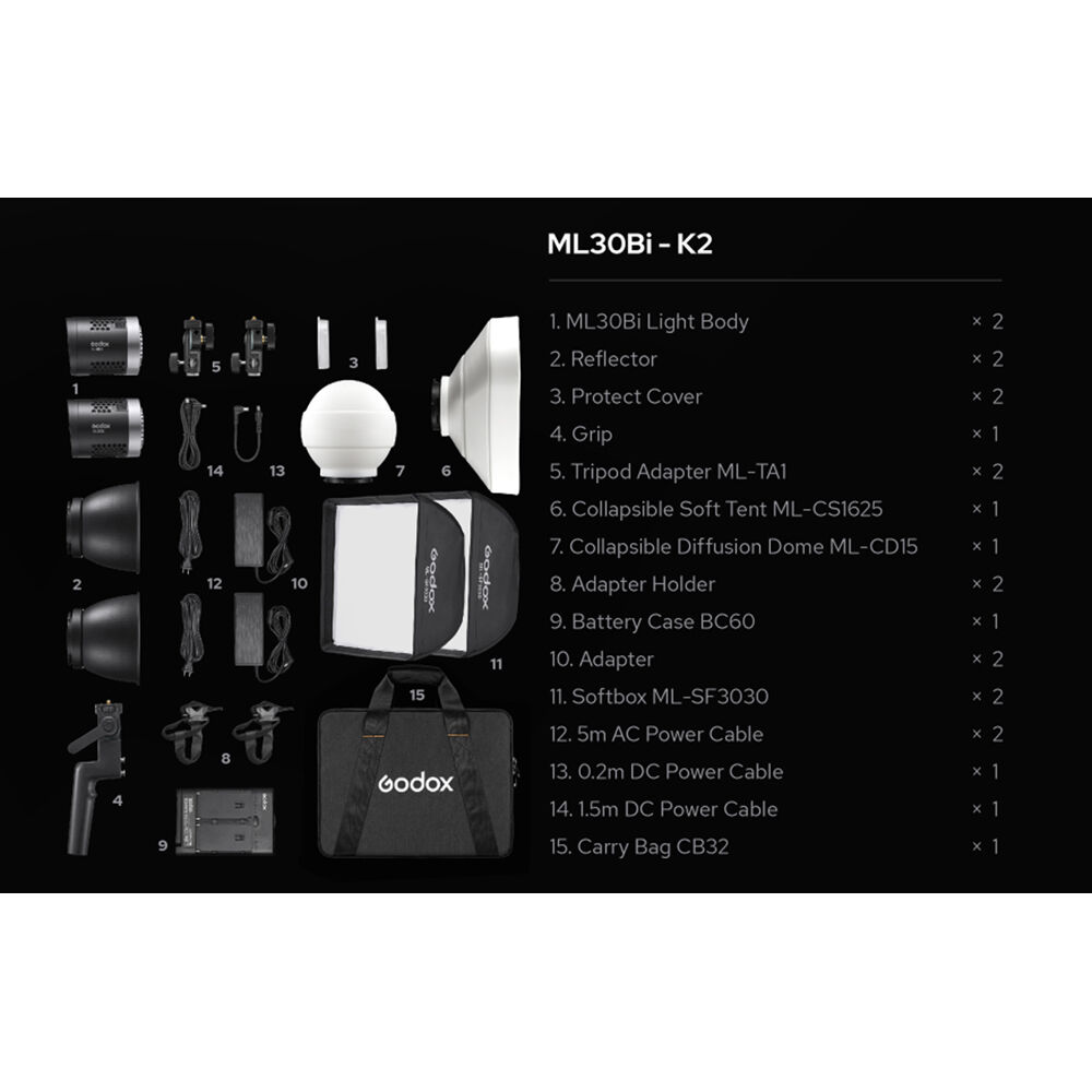 - Godox ML30Bi Dainty Bi-Color LED 2-Light Kit