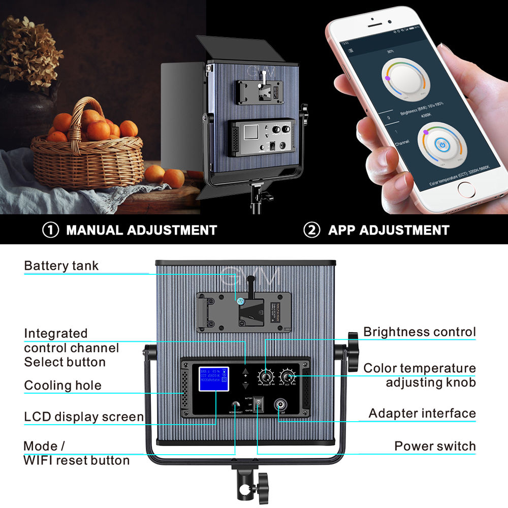 Variable Color: 3200 to 5600K, CRI: 974-Way Barndoors, 45° Beam SpreadDimmableGVM LED1200D LED LIGHT PANNEL