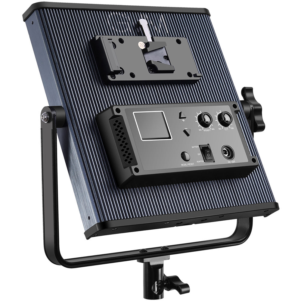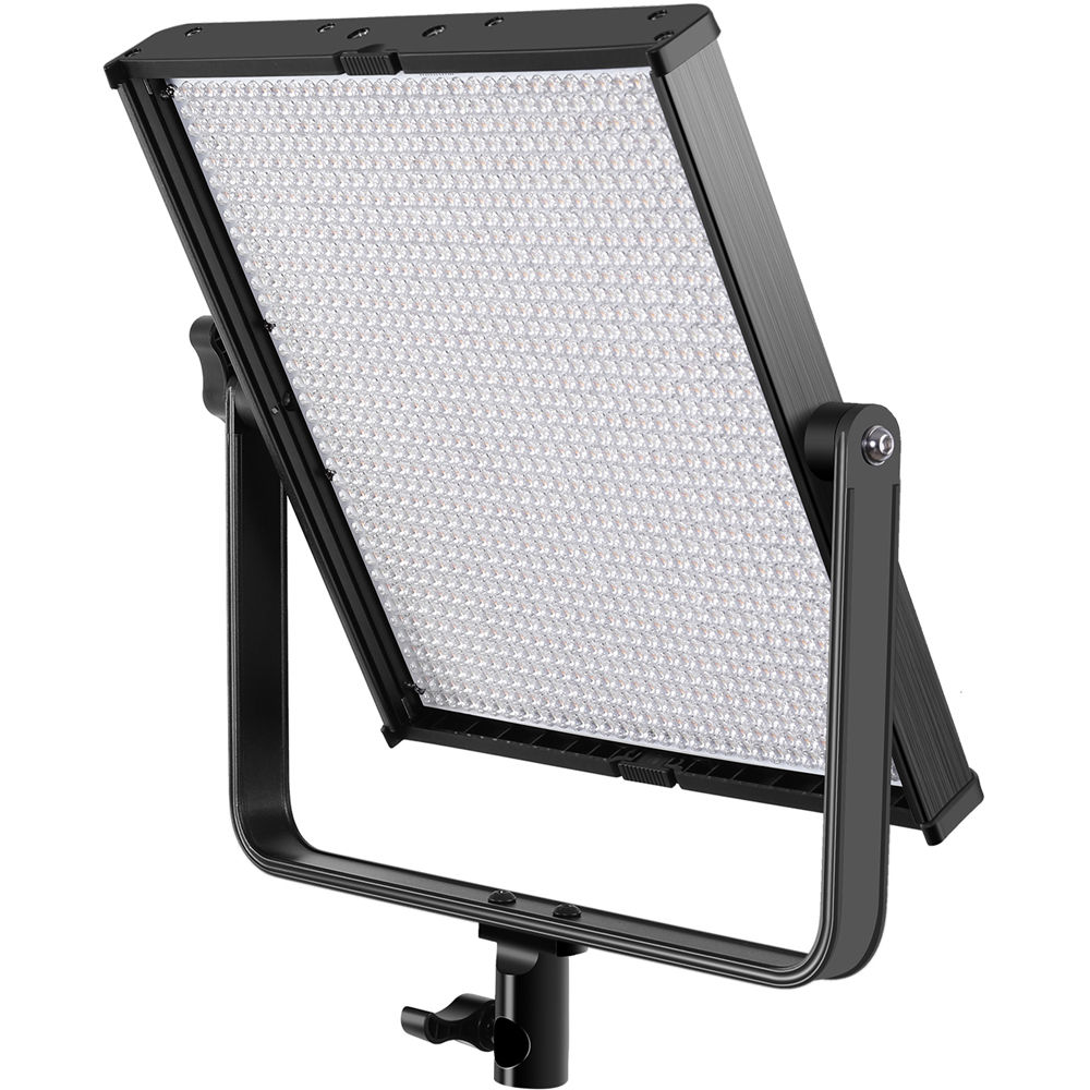 The LED1200 Bi-Color LED Light Panel from GVM is a dimmable light source with variable color from 3200 to 5600K or anywhere in between. It has a high CRI of 97, an indication of impressive accuracy in color rendition. The light can also be controlled with a downloadable app. Four-way barndoors are included to shape the beam spread for selective lighting.