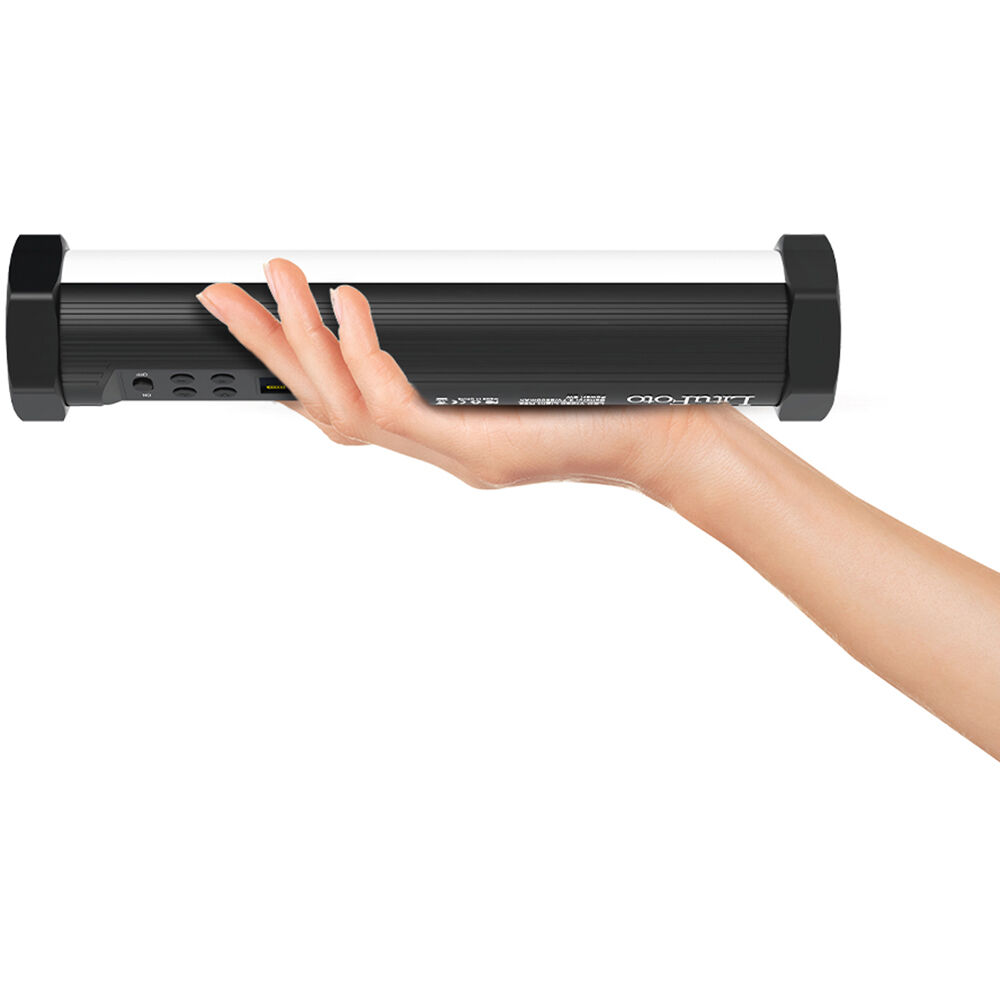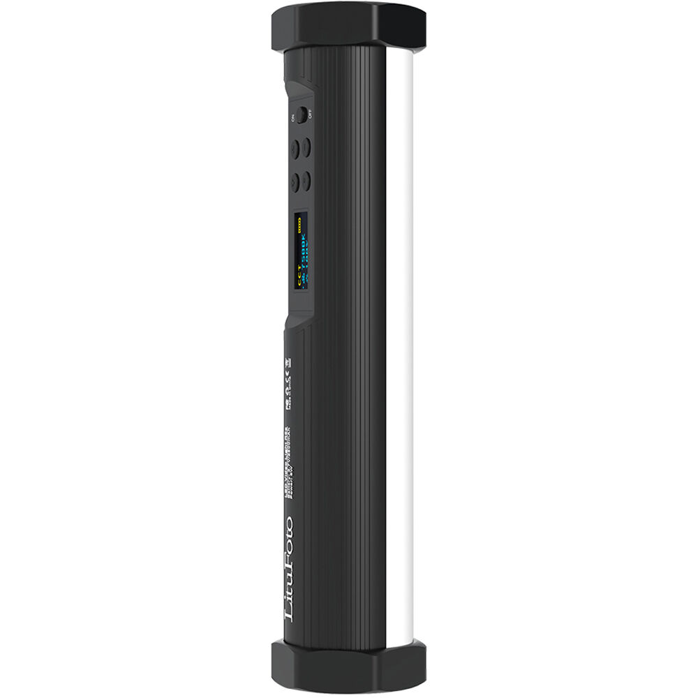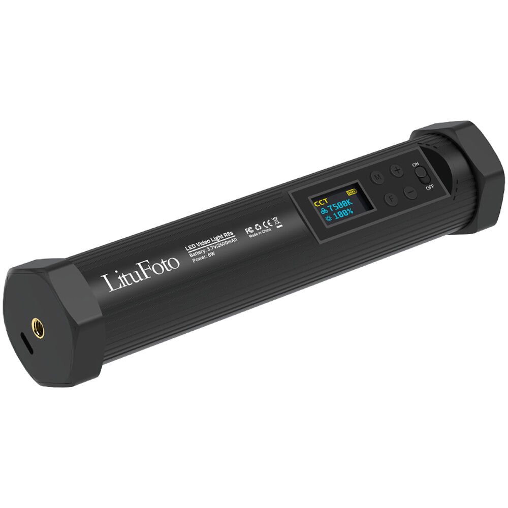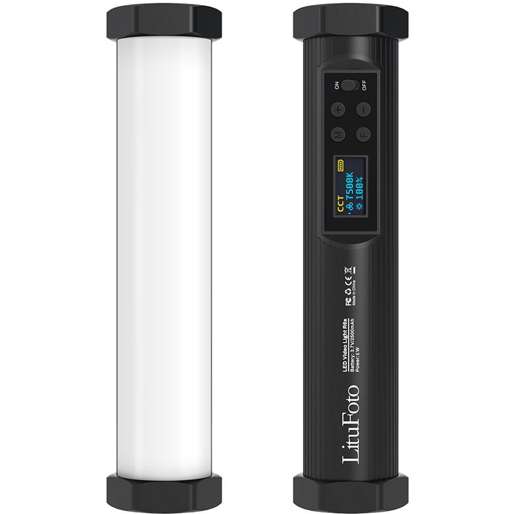 This black R6s LED Video Light Stick from LituFoto is suitable for live broadcasts, outdoor shooting, and product photography. Use it handheld or stick it to a metal surface with the built-in magnets. Each end has 1/4"-20 female threads for attaching it to compatible supports. The stick light has a built-in 2500mAh lithium-ion battery for approximately 1.6 hours of continuous output. The battery can be charged to 100% in two hours. The light has a wide color temperature range of 3200K-7500K in CCT mode and a high CRI of 96+, indicating accuracy in the rendering of color.
