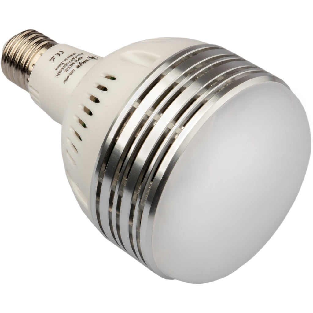 Create a photo quality continuous light source anywhere with a standard E26 Edison socket with this 60W LED Daylight Studio Bulb from Raya . Able to produce daylight-balanced 5400K light, this bulb can find uses in a variety of applications, especially being multi-voltage and switching from 100-240 VAC for worldwide use. Equivalent to a 250W incandescent bulb, it delivers a brightness of 4200 lumens at 3.3'. Also, it has a CRI of 84 for creating accurate colors. LED technology allows the light to run cool, and this is further assisted by a built-in fan. Additionally, it has a frosted finish for a soft output, as well as a rated average lifetime of 30,000 hours.