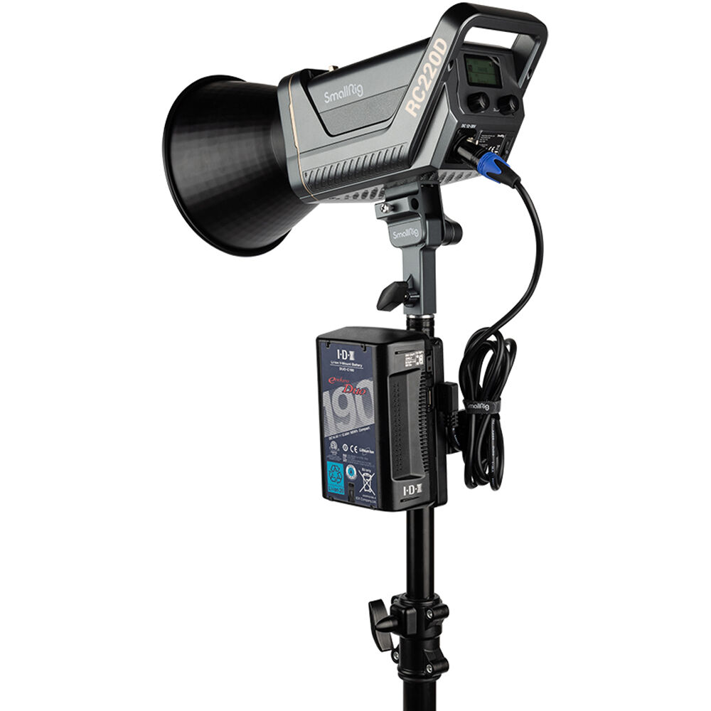 Designed to work with your SmallRig COB LED light (either daylight balanced or bi-color), the SmallRig V-Mount Battery Plate provides power to your light from its D-Tap output port. Simply mount the battery plate onto the lightstand supporting your light fixture and connect the included 5.9' long D-Tap to 3-pin XLR power cable to the battery plate and your light fixture for long run times without changing the battery.