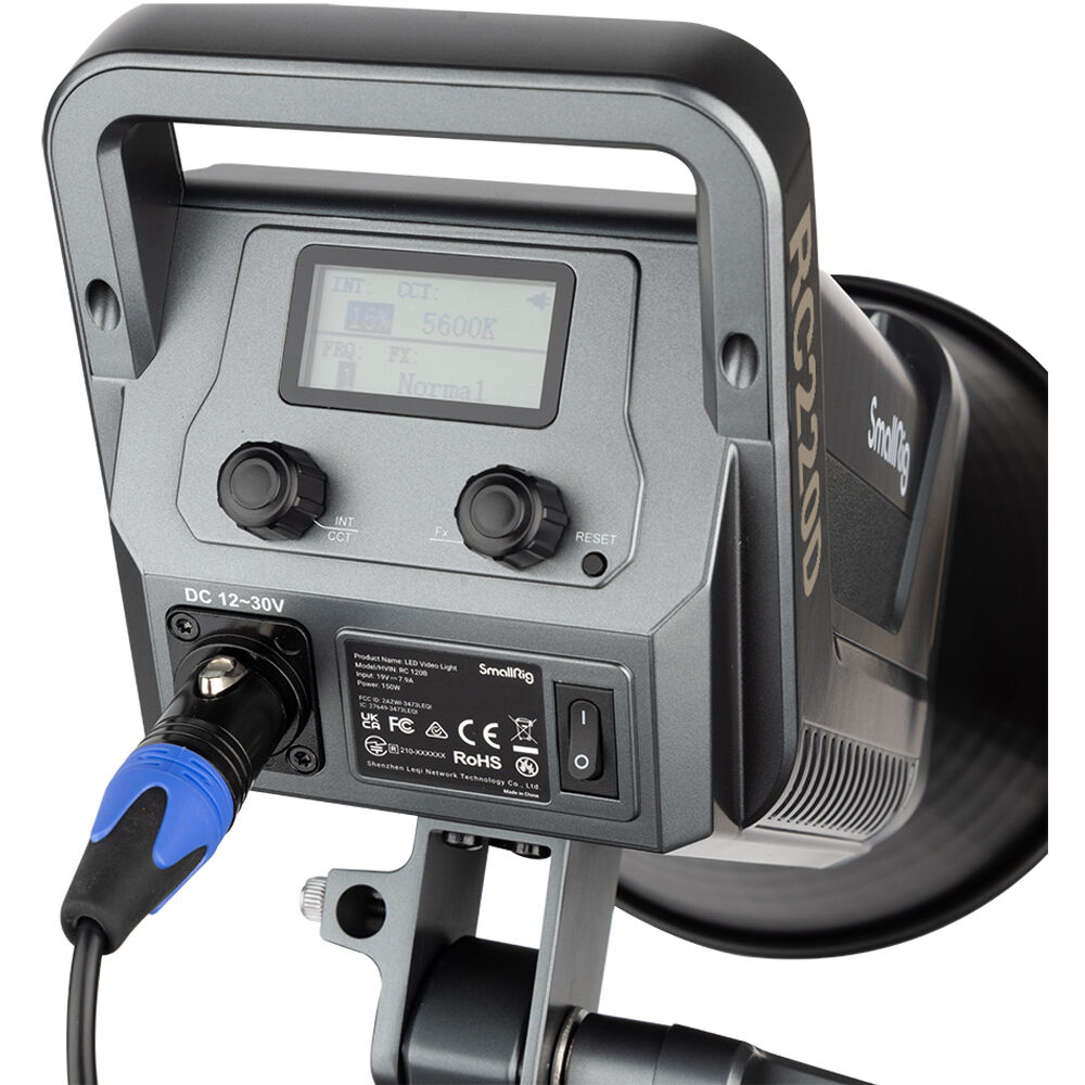 Power the fixture using the included AC/DC power supply or a user-supplied 14.4V/26V battery with an optional D-Tap to 3-pin XLR power cord. The integrated cooling fan turns on automatically to prevent the light from overheating, and at 30db the fan is quieter than a refrigerator or most whispers. Featuring nine effects modes for creative lighting, the fixture can be used for a variety of dramatic effects. For adding softboxes and other light diffusing/shaping tools, the fixture is compatible with Bowens light-control accessories. An integrated display screen allows you to see the light's settings at a glance, and for adjustments you can control the light locally or via the SmallGoGo app, which provides wireless control over your fixture from up to 330' away.