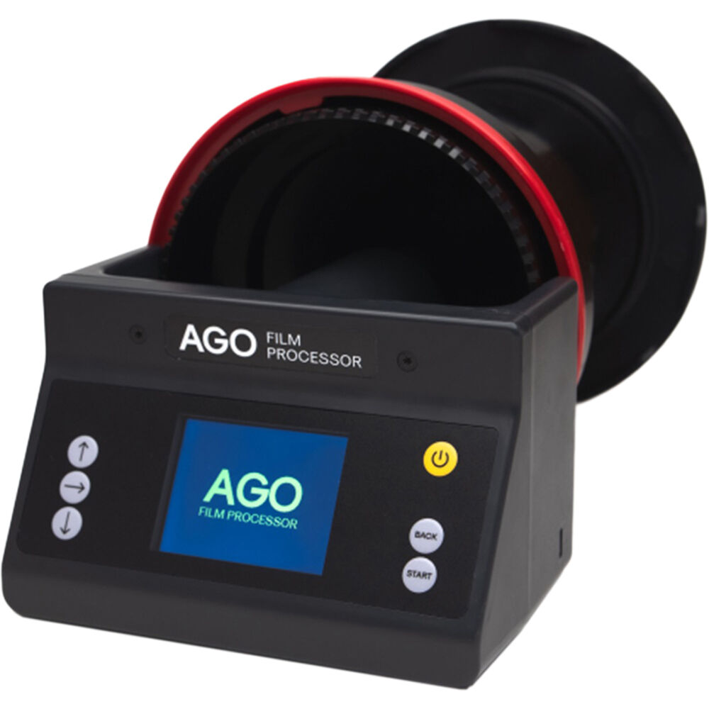 The AGO Film Processor offers a contemporary alternative to traditional film-processing methods. The first of its kind, the AGO Film Processor utilizes time compensation instead of temperature regulation to ensure proper development and to preserve up to 60% of the chemicals. Its standard set allows for processing of 35mm and 120 film formats with the capability of expanding to 4 x 5 and 8 x 10 with additional reels and tanks. Additionally, it comfortably develops color film and with the RA-4 capability it can even develop color prints.