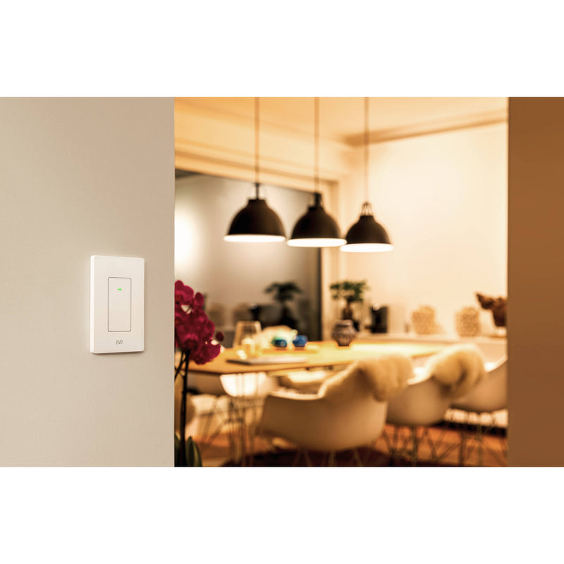 Remotely control your lights from anywhere with the Eve Light Switch (Matter). Supported by Thread network connectivity, this switch replaces a traditional single-pole or three-way light switch. You'll be able to remotely set light schedules and routines that suit your needs via the Eve app. Additionally, this Matter-enabled device lets you choose the voice assistant of your preferred platform. A neutral wire is required for operation.