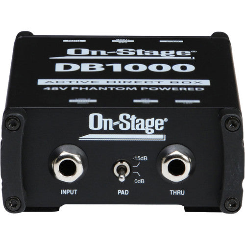 Connect your keyboard, guitar, or bass directly to your preferred mic preamp with the On-Stage DB1000 active mono DI box. It adapts a high-impedance, instrument-level 1/4" TS input to a low-impedance, mic-level XLR output. By converting your signal from unbalanced to balanced, it allows longer cable runs, less noise, and proper compatibility with mic inputs.