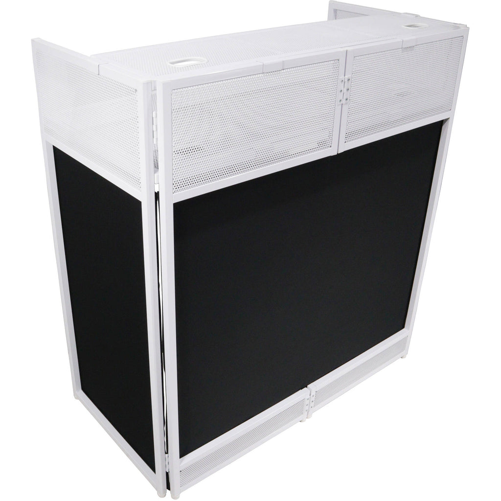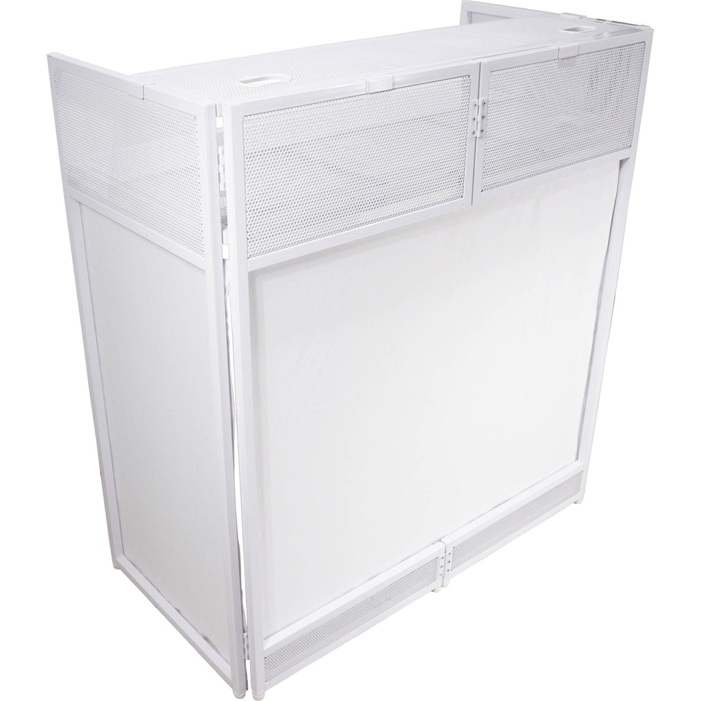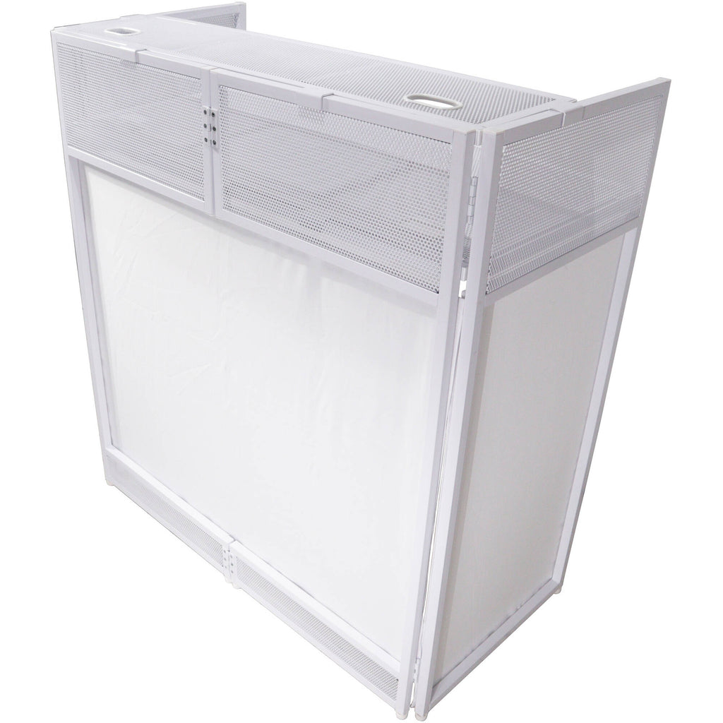 - ProX Vista DJ Booth Facade Table Station with Scrim (White)