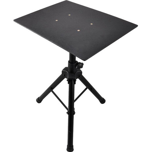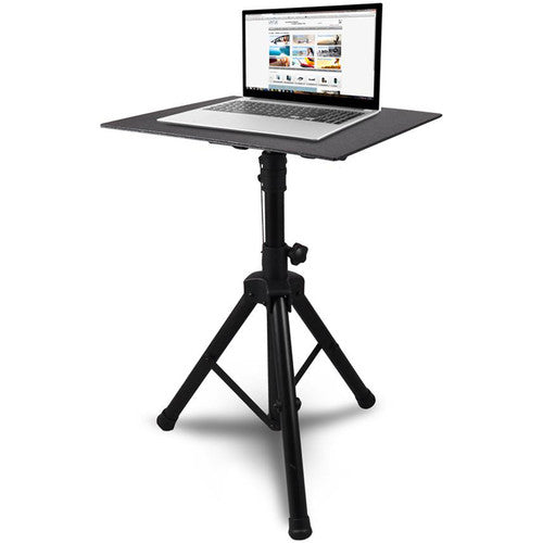 The Pyle Pro PLPTS4 Universal Laptop Device Stand utilizes a height adjustable tripod mount to safely elevate laptops, notebooks, mixers, and other electronic equipment to a comfortable height. Designed for use on-stage or in the studio, the stand's height adjusts from from 29 to 52", while the device tray's angle can be tweaked for optimum comfort while performing. Constructed from durable ABS plastic and steel, the PLPTS4 is capable of withstanding the rigors of on-the-road wear and tear.