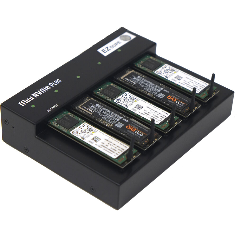 Copy data quickly and efficiently with the 4 Target M.2 Duplicator by EZ Dupe. This M.2 drive duplicator copies data from one source M.2 drive to up to four M.2 drives with no capacity limitations. The duplicator supports copy speeds up to 45 MB/s.