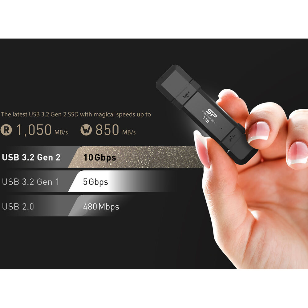 - Silicon Power 1TB DS72 Dual USB 3.2 Gen 2 Portable SSD (USB-C / USB-A)