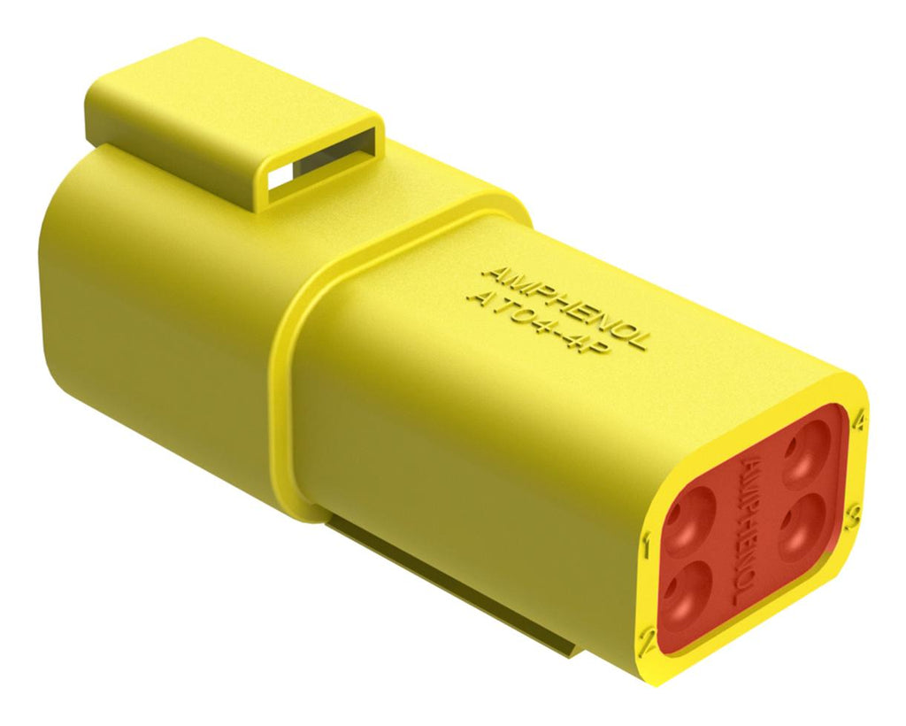 This is a AT04-4P-YEL AUTOMOTIVE HOUSING , RCPT, 4POS, 13A, YEL product from AMPHENOL SINE/TUCHEL with the model number AT04-4P-YEL