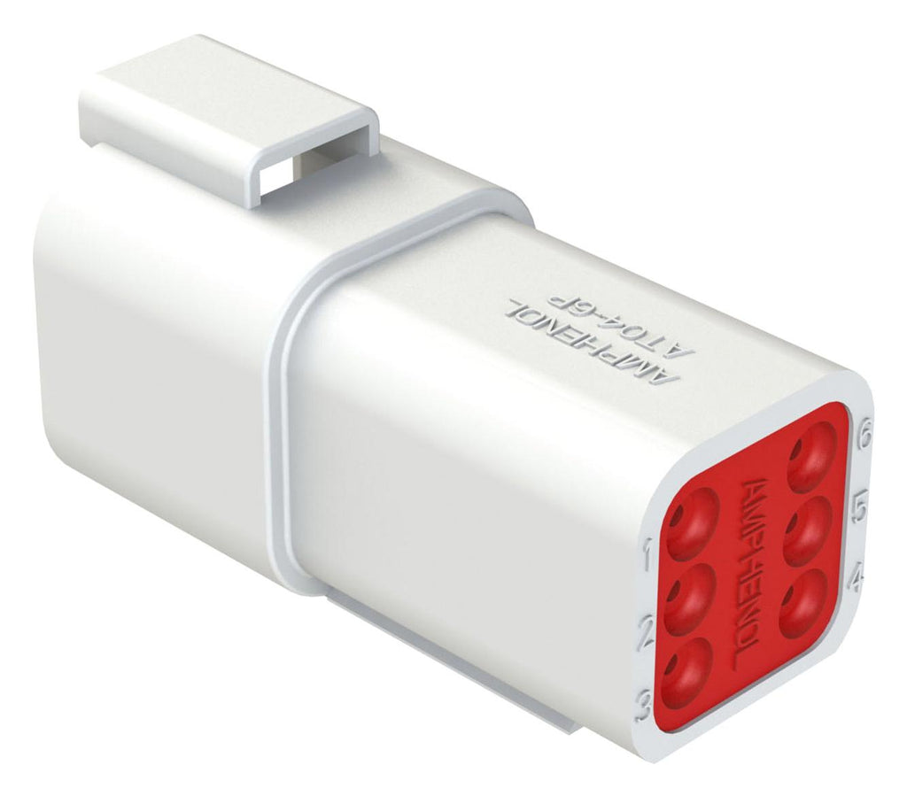 This is a AT04-6P-WHT AUTOMOTIVE HOUSING , RCPT, 6POS, 13A, WHT product from AMPHENOL SINE/TUCHEL with the model number AT04-6P-WHT