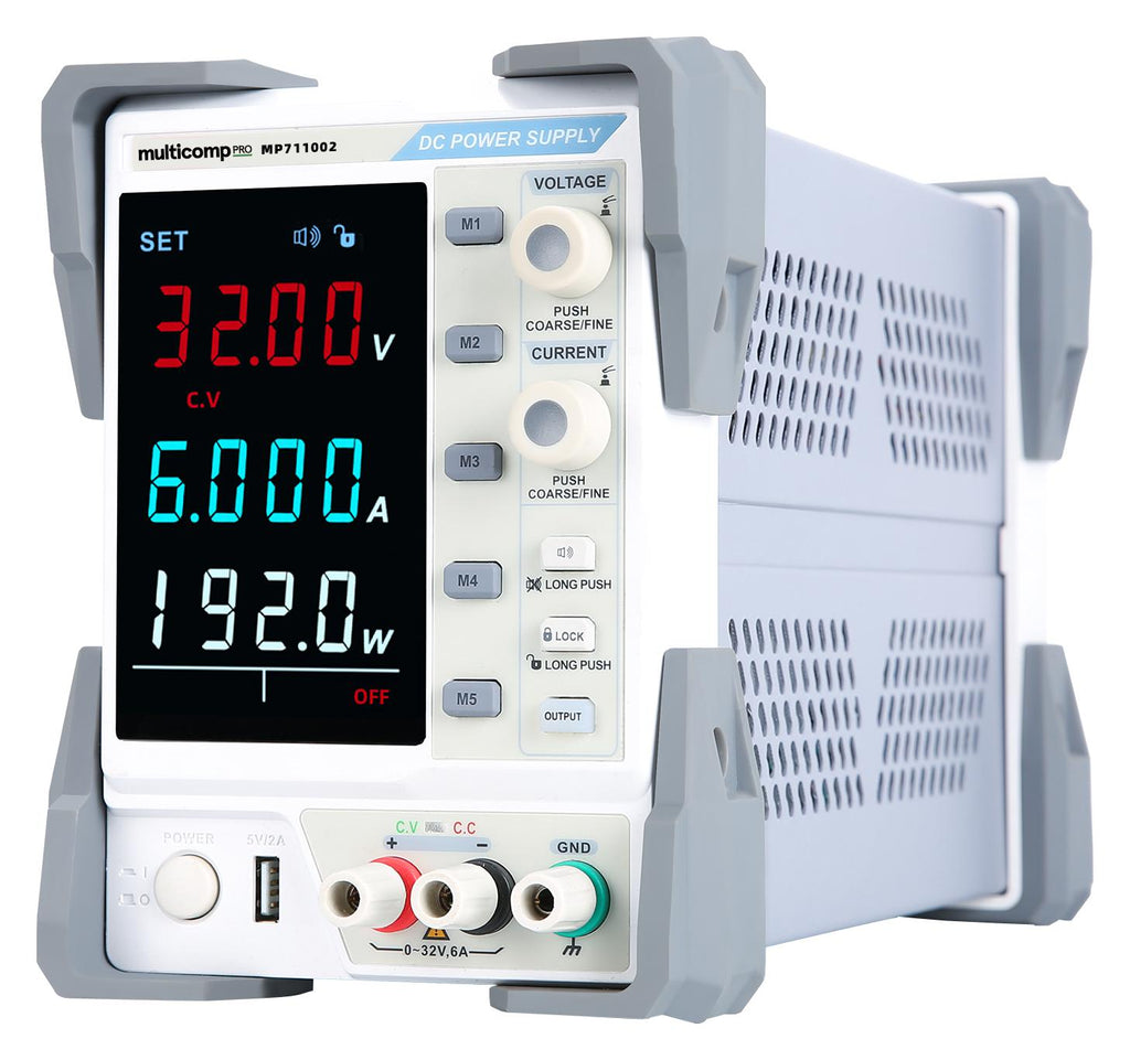 The DC power supply has two groups of independent outputs: the adjustable output of 32V/6A, which has the constant voltage (CV) and constant current (CC) modes, and the fixed UDP1306C output of 5V/2A with protection features of short circuit and overvoltage.