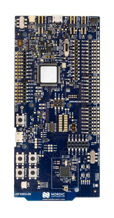 This is a NRF52833-DK DEV KIT , BLUETOOTH LOW ENERGY, SOC product from NORDIC SEMICONDUCTOR with the model number NRF52833-DK