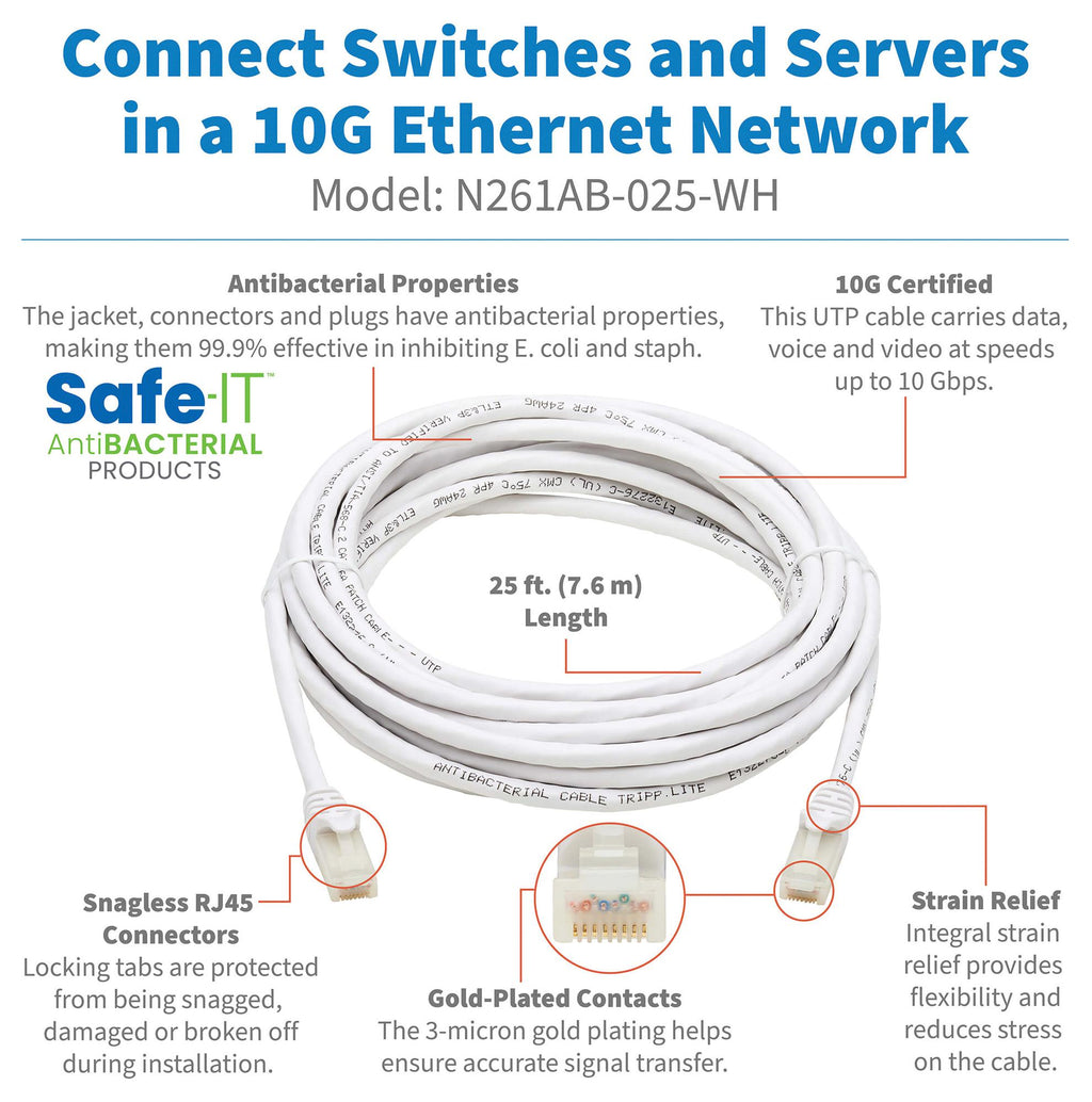 TRIPP-LITE N261AB-025-WH N261AB-025-WH Enet Cable RJ45 PLUG-PLUG 25FT White