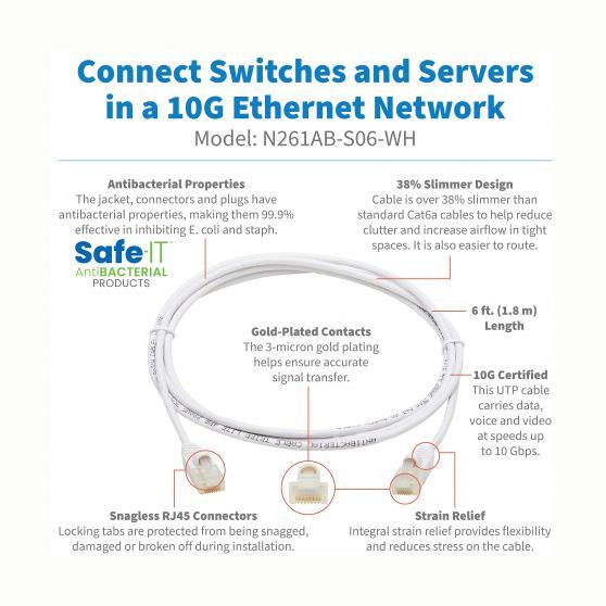 This is a N261AB-S06-WH ENET CABLE , RJ45 PLUG-PLUG, 6FT, WHITE product from TRIPP-LITE with the model number N261AB-S06-WH