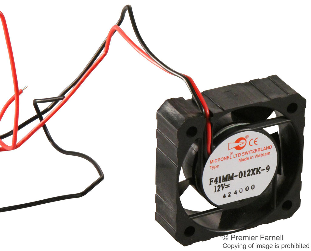 This is a 12V DC 3 Pin Ball Bearing Axial Fan 18dB 41mm product from MICRONEL with the model number F41MM-012XK-9