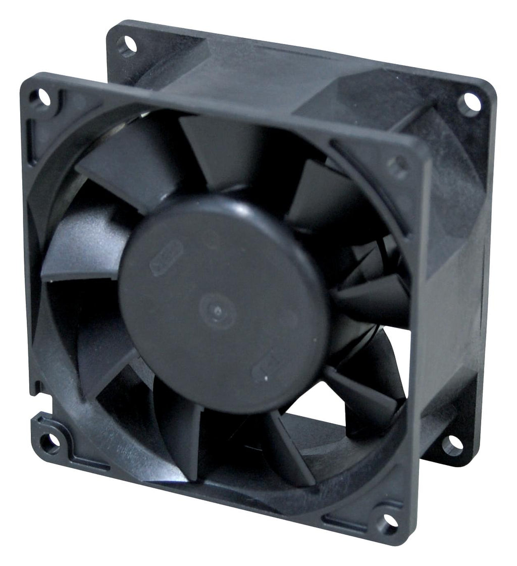 This is a 08038RA-12Q-EA-00 DC Axial Fan , 115 V, Square, 92.5 mm, 25 mm, Ball Bearing, 20 CFM product from NMB TECHNOLOGIES with the model number 08038RA-12Q-EA-00