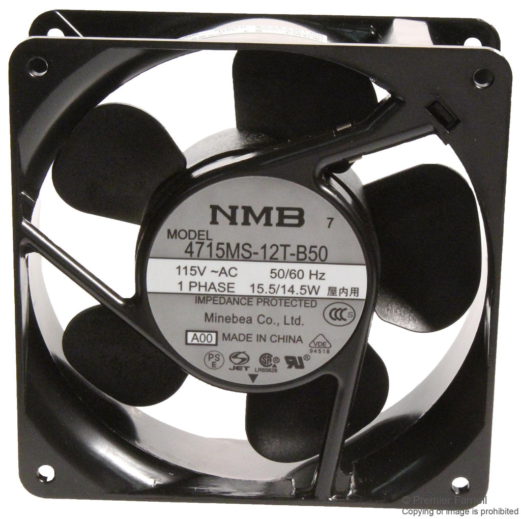 This is a AXIAL FAN, 119MM, 115VAC, 110CFM, 45DB product from NMB TECHNOLOGIES with the model number 11938FB-A1N-EA-00