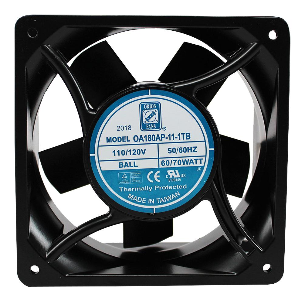 ORION FANS OA180AP-11-1TB AC Axial Fan, 115V, Square, 180 mm, 89 mm, Ball Bearing, 375 CFM