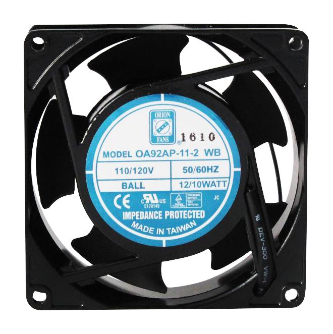 ORION FANS OA92AP-11-1WB AC Axial Fan, 115V, Square, 92 mm, 26 mm, Ball Bearing, 35 CFM