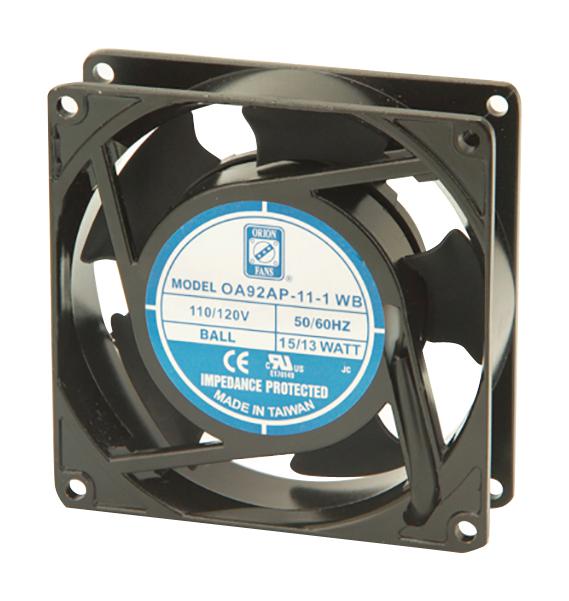 This is a OA92AP-11-1WB AXIAL FAN , BALL, 35CFM, 30DB, 13W, 115V product from ORION FANS with the model number OA92AP-11-1WB
