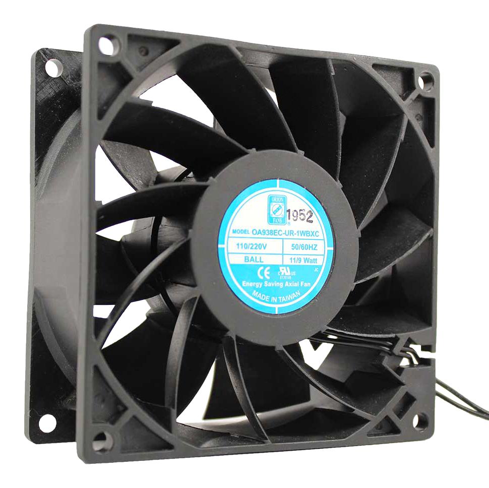 This is a OA938EC-UR-1WBXC AC Axial Fan , 110V / 220V, Square, 92 mm, 38 mm, Ball Bearing, 88 CFM product from ORION FANS with the model number OA938EC-UR-1WBXC