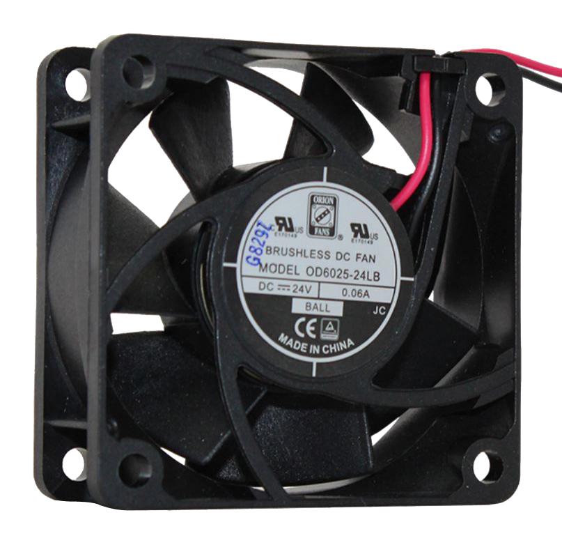 This is a OD6025-24LB DC Axial Fan , 24 V, Square, 60 mm, 25 mm, Ball Bearing, 14 CFM product from ORION FANS with the model number OD6025-24LB