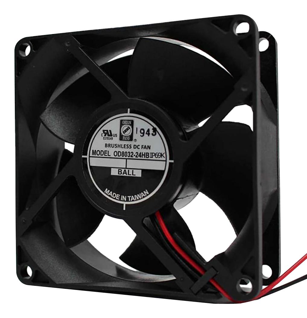This is a OD8032-24HBIP69K DC Axial Fan , 24 V, Square, 80 mm, 32 mm, Ball Bearing, 77 CFM New product from ORION FANS with the model number OD8032-24HBIP69K