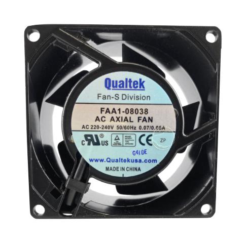 This is a FAA1-08038NBMT31 AC AXIAL FAN , 80MM, 24CFM, 26.2DBA product from QUALTEK ELECTRONICS with the model number FAA1-08038NBMT31