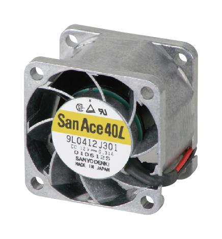 This is a Axial Fan, 12 VDC, DC, 40 mm, 28 mm, 19 dBA, 5.65 cu.ft/min product from SANYO DENKI - SANACE FANS with the model number 9L0412M301