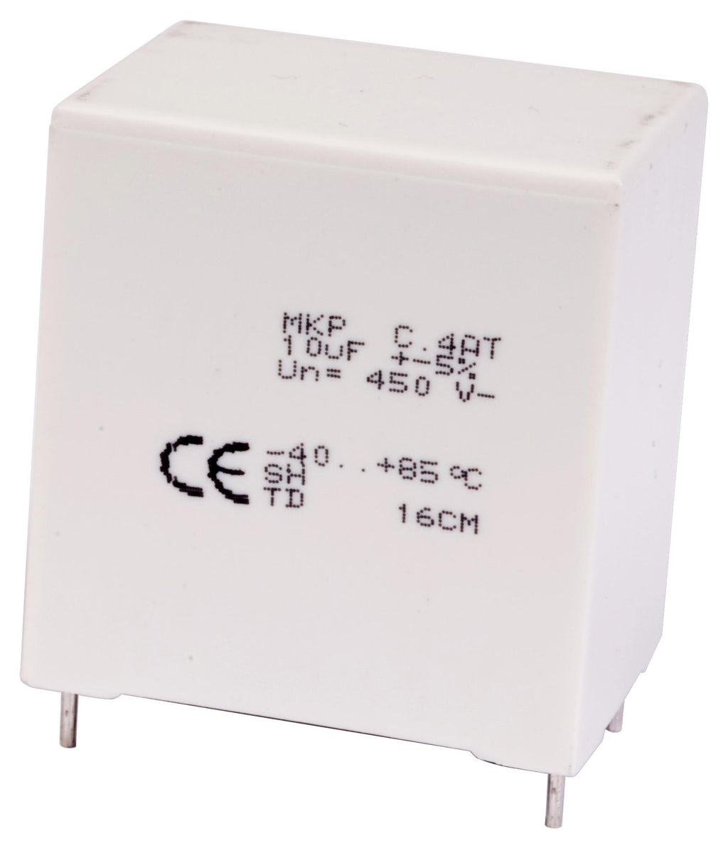 C4AF are polypropylene metallized film capacitors that are rectangular shape, with a plastic box-type design (white or grey in color), filled with resin and have 2 or 4 tinned copper wires. These capacitors are intended to withstand harsh environmental conditions. Typical applications include clamping, AC and harmonic filtering in UPS systems, motor drives, renewable energy, and automotive systems.