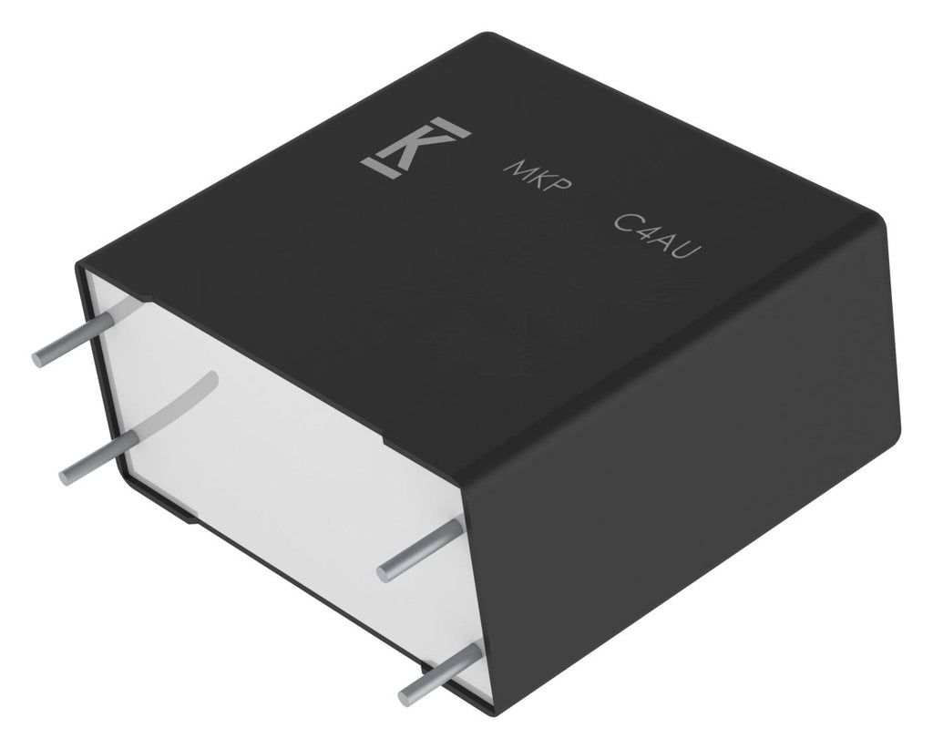 C4AU series radial leaded, printed circuit board mount power film capacitors for harsh environment DC link (automotive grade) applications. C4AU series capacitors are polypropylene metallized film capacitors with a rectangular, plastic box-type design, filled with resin and uses 2 or 4 tinned wires. These capacitors are intended to withstand harsh environmental conditions. Automotive grade devices meet the demanding Automotive Electronics Council's AEC-Q200 qualification requirements. Typical applications include DC filtering, DC link, power electronics, energy storage, renewable energy grid interface, motor drives and automotive applications.