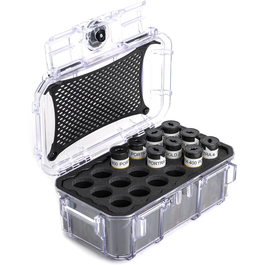 The clear Medium Format Film Case from Evergreen Cases is designed to hold and protect 18 rolls of 120mm medium format film. This crush, dust, and waterproof case protects your film from damage and moisture. It can be stored safely in a refrigerator or freezer for extended periods of time. Organize your film with the premium waterjet cut molded XPE insert. You can also use the mesh lid organizer to hold small items like cables, credit cards, your ID, and more. The Twist Lock Latch system ensures your case stays shut until you open it. You can also use the included keys to lock your case for extra security.