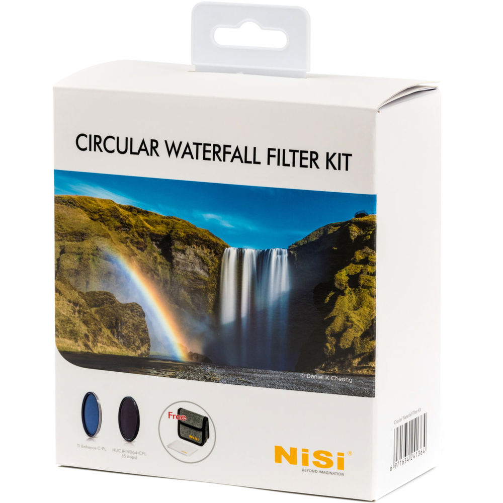 This NiSi Circular Waterfall Filter Kit contains two filters that are compatible with lenses that feature 67mm front filter threads. They each can be used to improve the results of waterfall photography. Included is a circular polarizer filter that helps to reduce reflections as well as glare by filtering out light that has become polarized due to reflection from a non-metallic surface, as well as a filter that combines a solid neutral density effect with a circular polarizer effect. When in use, the solid neutral density and circular polarizer filter provides a 6-stop exposure reduction while also helping to reduce reflections and glare by filtering out light that has become polarized due to reflection from a non-metallic surface.