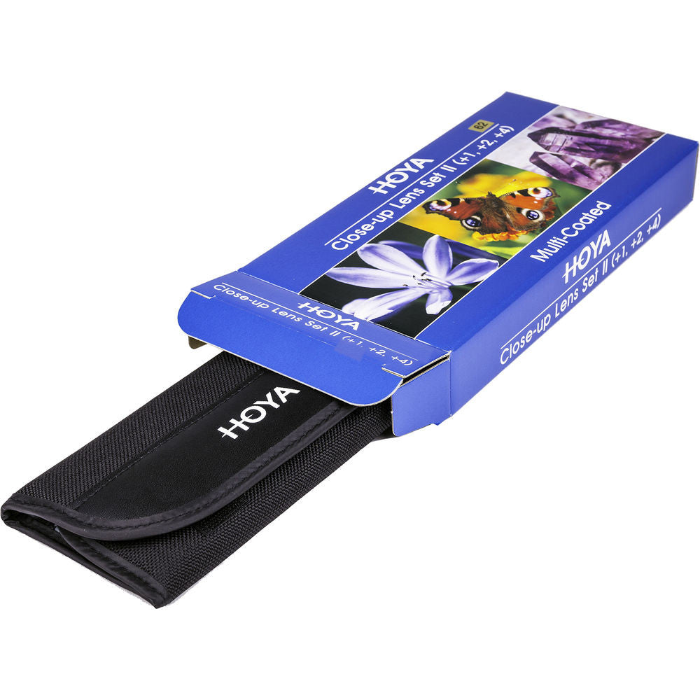 This Hoya 46mm HMC Close-Up Filter Set II offers the ability to achieve macro-like results with camera lenses that have 46mm front filter threads. A close-up filter is a magnifier that optically decreases the focal length of a camera lens placed behind it. This effect lessens the minimum focus distance between the camera lens and a subject. Magnification can then be obtained by decreasing the distance between the subject and the combined camera lens and close-up filter.
