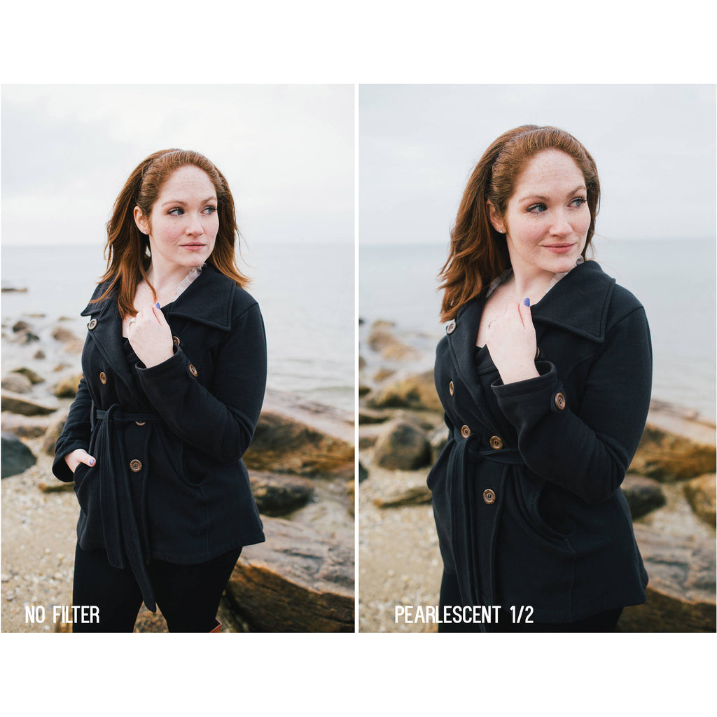 The Tiffen 67mm Pearlescent 1/2 Filter can be applied to purposely soften contrast and reduce sharpness. This can be useful for high-resolution digital cinematography in order to create a more flattering result of a subject by reducing the appearance of blemishes and softening highlights. Additionally, a pearlescent halo around highlights is created which can further enhance a subject's appearance or produce a desired effect.