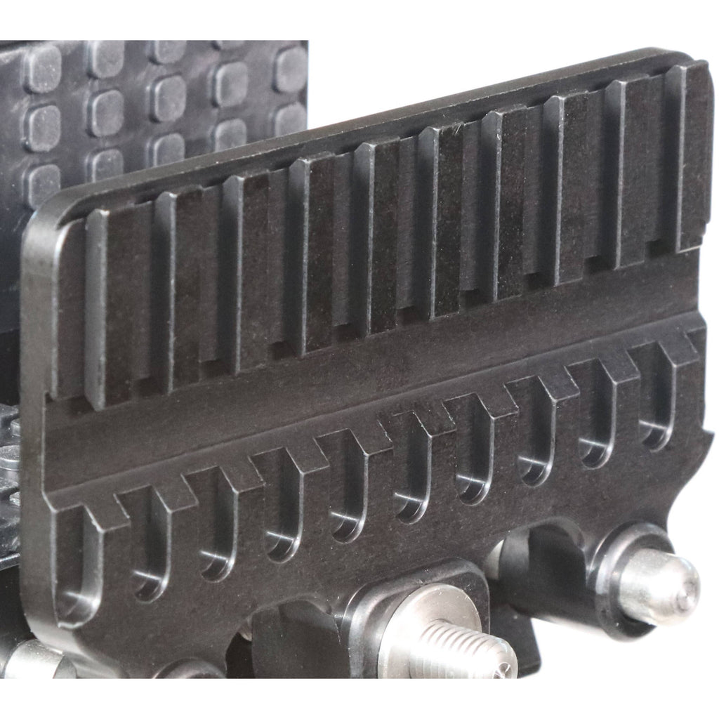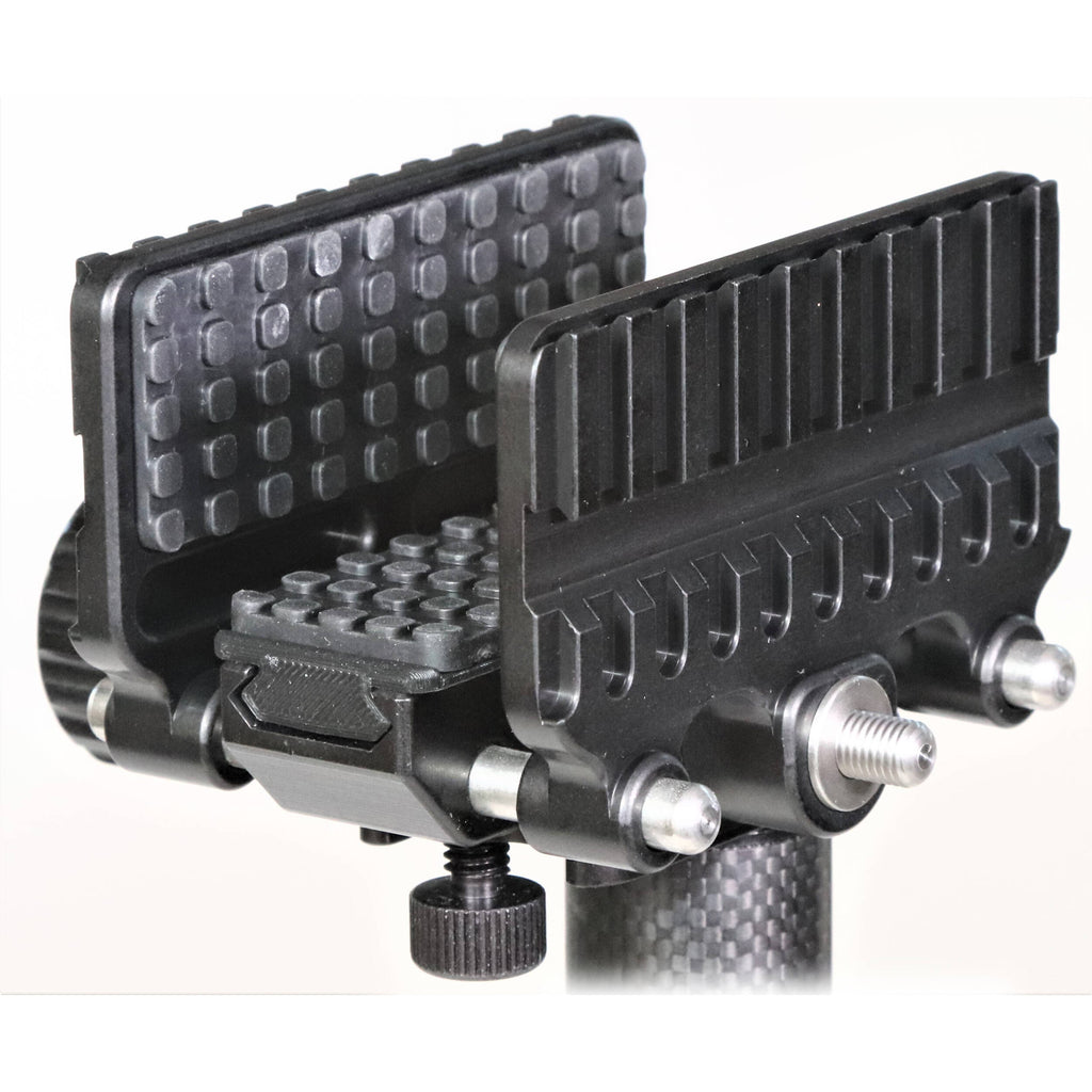 The FM-570 GunPOD Tripod Gun Mount System from Field Optics Research is a gun vice designed primarily for tactical weapons, which uses external adjustable Pitcanny sidewalls to maintain a perfect center of gravity on a tripod. The reversible sidewalls can switch between soft- or hard-side-in for better stability. Each side features interlock grooves that engage with a gun's Picatinny strip or quad rail. For increased versatility, a 4" Picatinny lower rail slot allows you to lock your rifle or pistol in place without using the saddle walls.