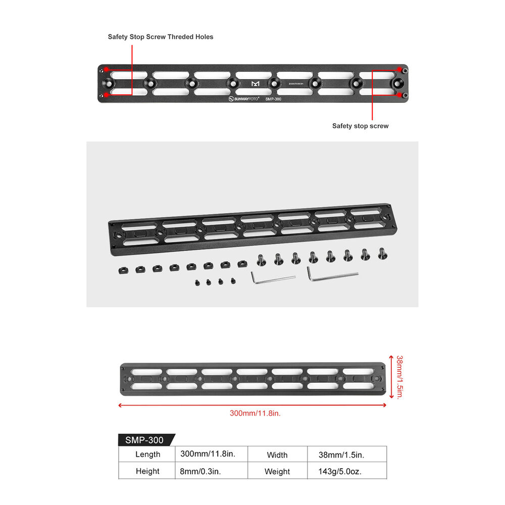 - Sunwayfoto SMP-300 M-LOK Rail Arca-Type Adapter Plate (11.8")