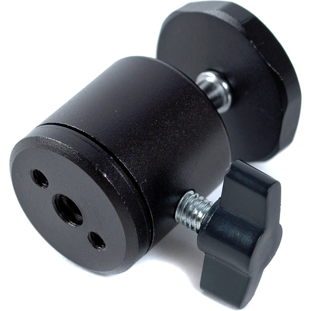 The Smith Victor Medium Metal Ball Head has a single-locking lever that controls the movement of the ball, and the ball head can mount to a bracket, camera rig, or tabletop tripod via the female 1/4"-20 thread. Furthermore, small accessories like a microphone, a video light, or a small camera can attach to the top by the same size male thread.