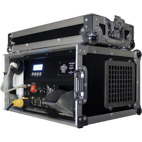 Designed for a life on the road and built into a sturdy aluminum flight case, the Titan Hazer HT6 Touring Hazer with DMX, Digital Control, Metal Flight Case from Froggy's Fog provides over 14,000 CFM of haze coverage. Featuring a 0.9-gallon fill tank, the hazer can run for more than four hours without refilling, and the advanced fluid-sensing technology built into the machine will automatically turn it off if the fluid level becomes too low, thus helping to prevent damage. Control the unit via an included wireless remote, or use DMX control to sync it with the rest of your lighting effects. The HT6's built-in LCD control panel, wireless control, and 3-pin / 5-pin DMX connectors enable you to easily connect the HT6 into your DMX Universe.