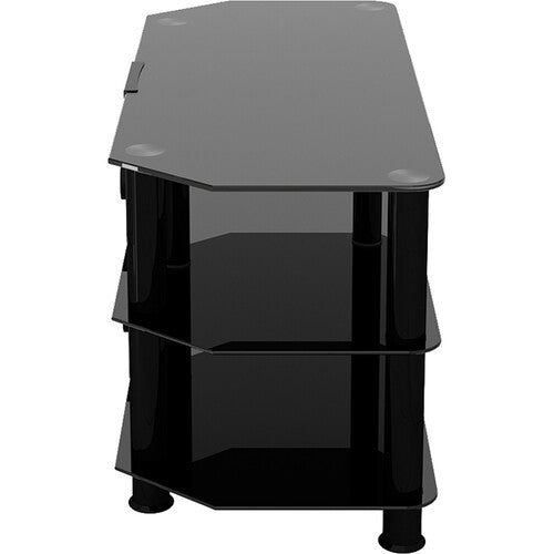 The 39" Classic Corner Glass TV Stand from AVF Group is an easy to construct, contemporary, and versatile solution for your home entertainment needs. The black tempered safety glass and durable stainless steel legs modernize any space, while the angled corners save valuable space when placed into a corner of your room. Arrange your various A/V components on the middle and bottom shelves. The built in cable management column to the rear of the stand neatly organizes your cables so they are not visible.