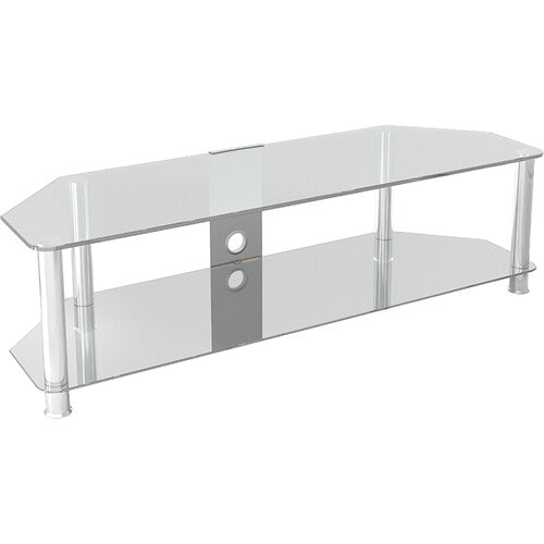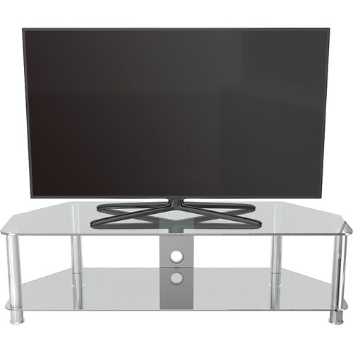 AVF Group Classic Corner Glass TV Stand with Cable Management (Chrome Effect with Clear Glass)
