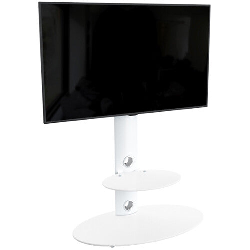 The Lugano Oval Pedestal TV Stand from AVF Group is a contemporary looking satin white TV floor stand with a floating tempered glass shelf that helps enhance its features and look. Integrated cable management within the column allows the cables to be easily hidden from view. Also featured is secure AVF mounting technology so you can protect your TV from being accidentally knocked over.