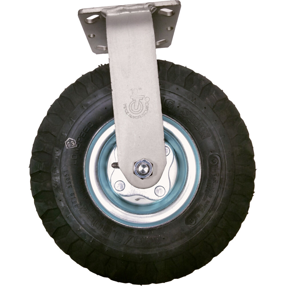 The Rigid Caster Foam-Filled Wheel by Backstage Equipment is a heavy-duty 10" caster for moving heavy equipment safely. The non-rotating, pneumatic caster and a foam-filled interior ensure a smooth ride over any terrain.