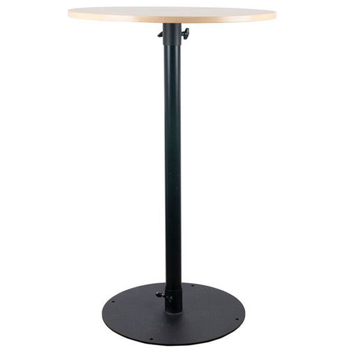 Ideal for Company Functions & PartiesWooden Tabletop & Heavy Metal Pole/BaseSets Up Quickly / No Tools RequiredWhite Scrim for a Modern Aesthetic Ideal for parties, company functions, and other special events, the Decor Cocktail Table from Eliminator Lighting consists of a 23.5" round wooden tabletop, a 2" metal center tube, and an 18" heavy metal base. Whether you use it to hold cocktails and hors d'oeuvres, or a laptop and mouse, the table is designed to set up quickly when needed. The 3 parts go together without requiring any tools, and the table breaks down to store in the included heavy-duty carrying bag. For more social gatherings, you can use the white scrim that's included to cover the table and transform it into something more presentable.