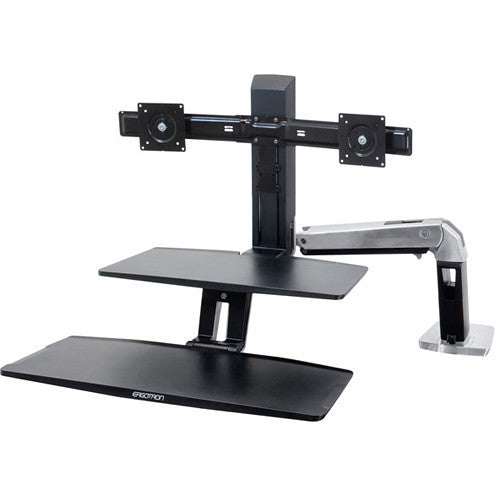 The WorkFit-A Sit-Stand Workstation from Ergotron provides you with a comfortable computing experience whether you prefer to sit or stand. It supports up to two 24" side-by-side displays and has a suspended keyboard tray positioned below the monitor mounts for your computing comfort. Furthermore, the tray can be folded up when not in use. Constant Force lift technology provides fluid, one-touch adjustments and integrated cable management lets you route and hide your cords to keep your desk free from tangled cables.