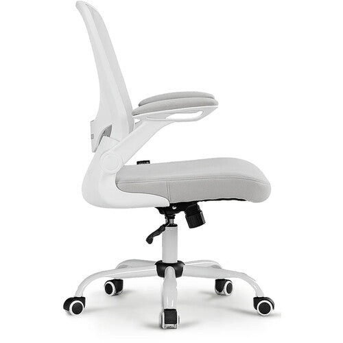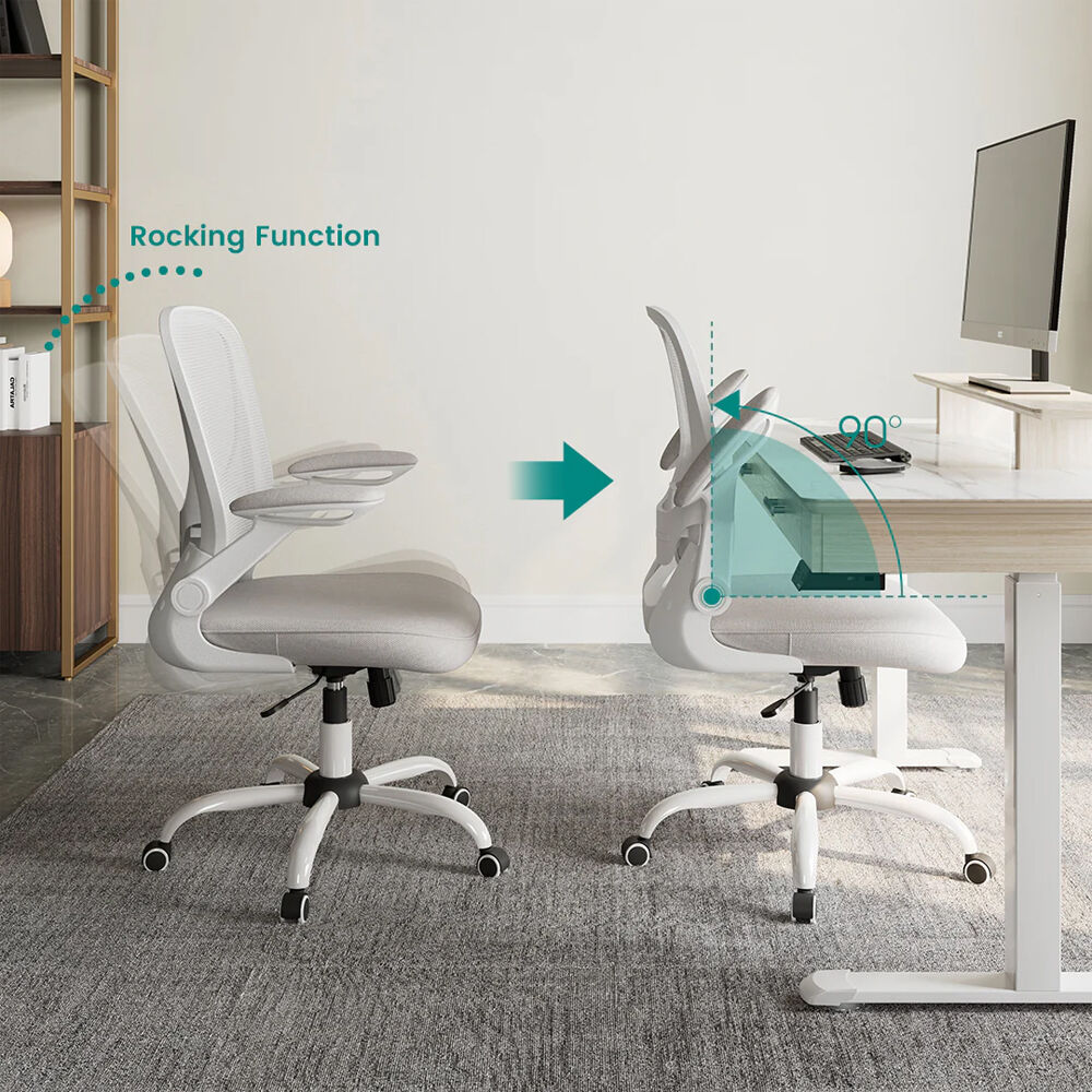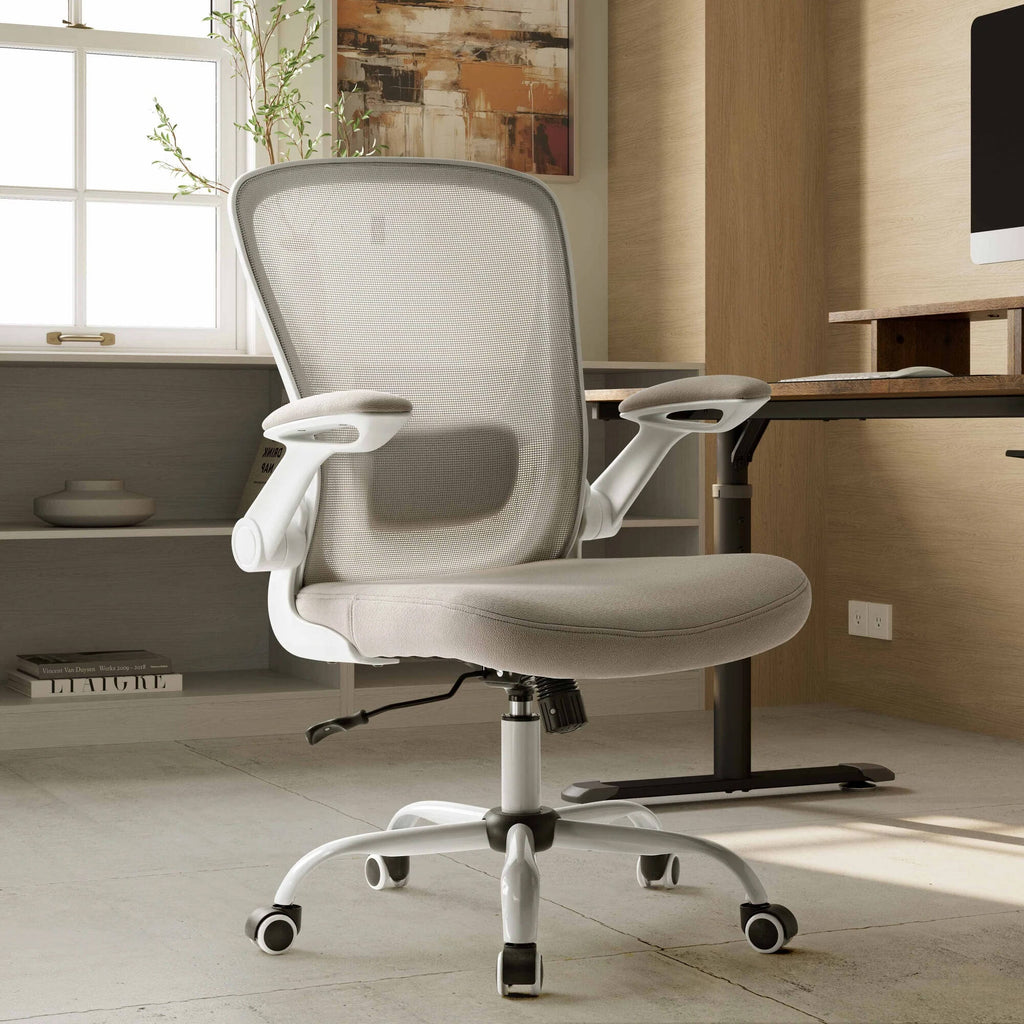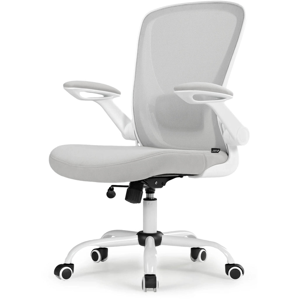 If you're looking for minimalist style and comfort on a budget, look no further than the gray Onyx Series Ergonomic Office Chair from Eureka. This chair features a mesh back rest with configurable lumbar support, space-saving flip-up armrests, and a soft sponge cushion to get you through the day.