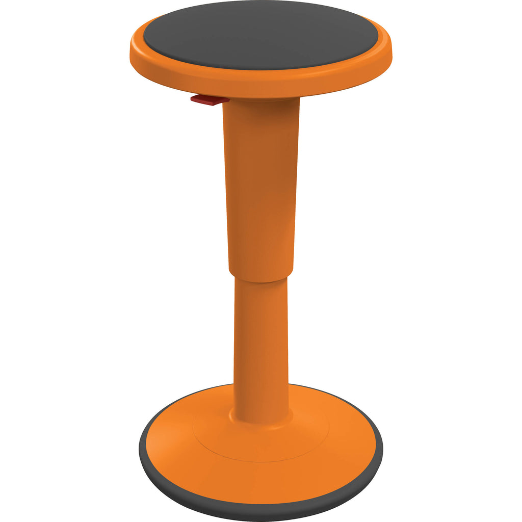 The tall orange MooreCo Hierarchy Grow stools offer a unique alternative to student chairs, allowing for an adjustable seat height of 17 to 24". Built to "wobble", these stools help ease student discomfort from sitting still for extended periods of time, while allowing them to stay focused in the classroom