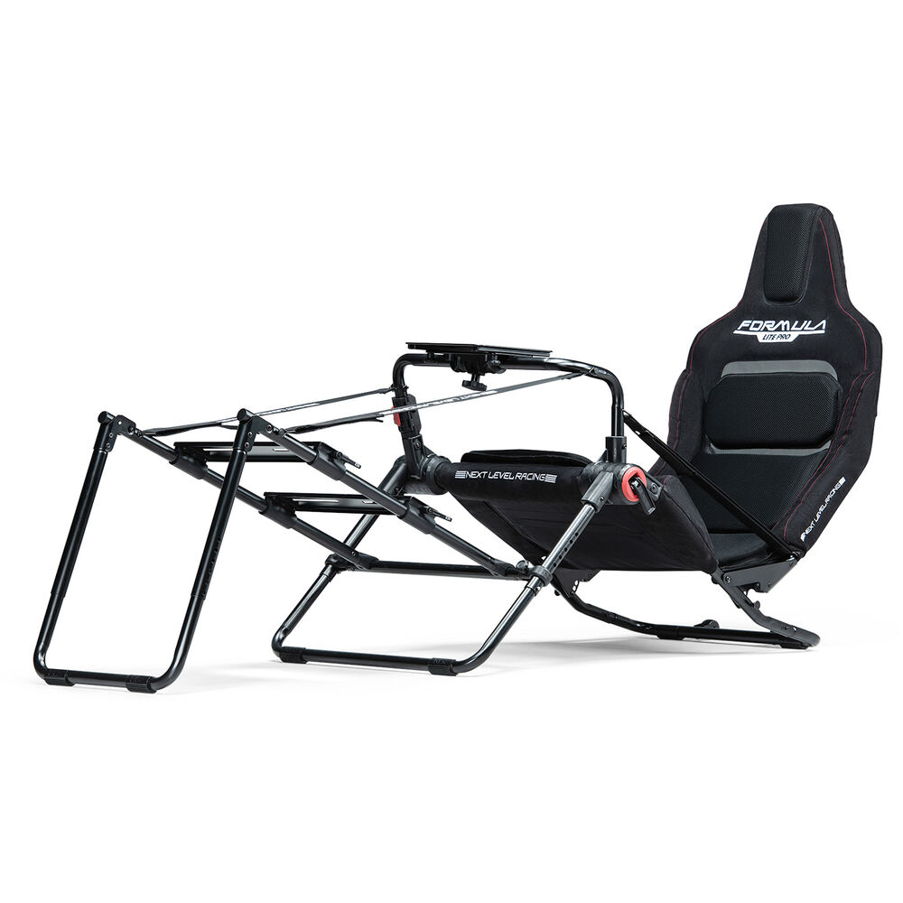 Evolve your racing sim experience with the Next Level Racing Formula Lite Pro. This cockpit delivers an authentic formula racing seat position, a padded mesh seat cover, and compatibility with Direct Wheels up to 10Nm. It offers tool-free adjustments and features a space-saving design that is foldable even with electronics attached.